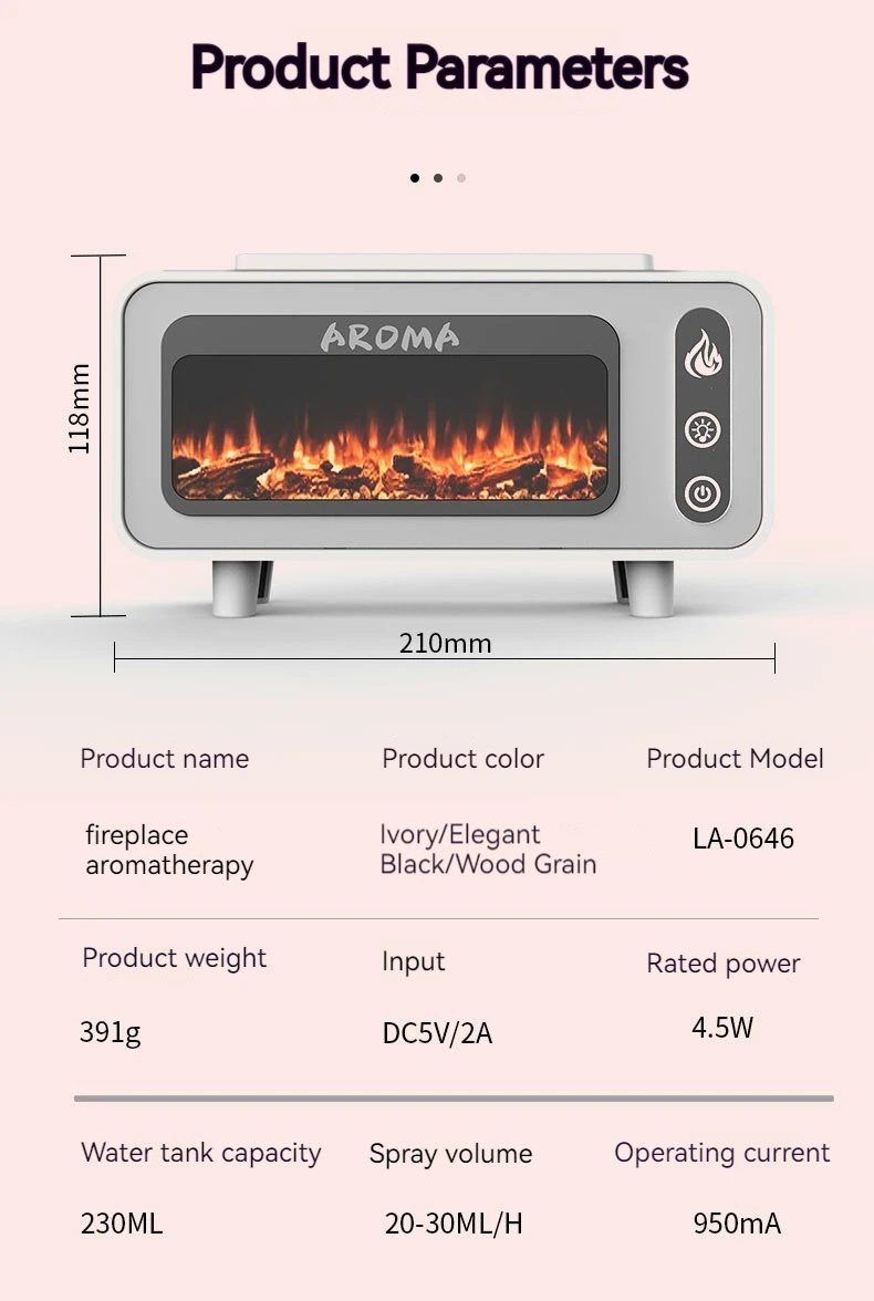 Flame Light Effect: This flame aroma diffuser is designed with smart chip and cool mist that can generate the effect of flame, with 2 modes flame brightness can be adjusted, the 3D realistic burning flame will bring the atmosphere of romantic and healing at night.